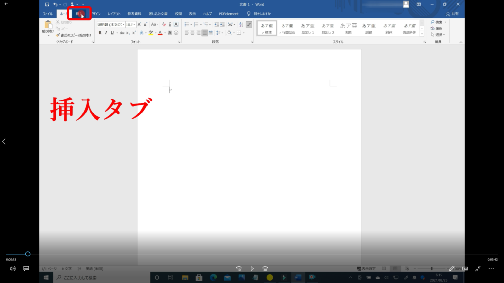↓手順① 「挿入タブ」をクリックします。