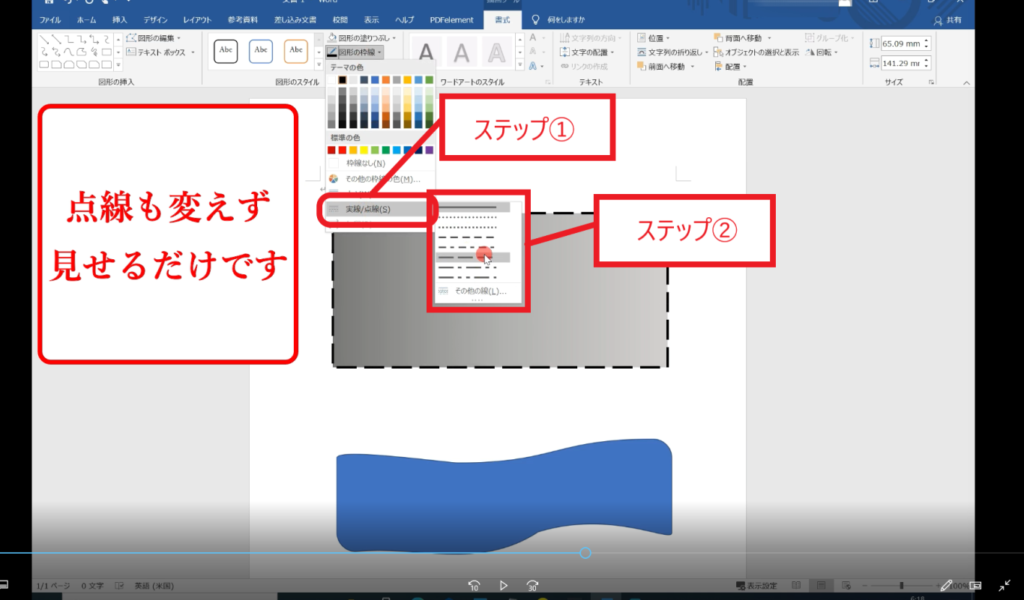 ↓手順③ 「ステップ①」から「ステップ②」へ移動して実線/点線を変えることができます。
