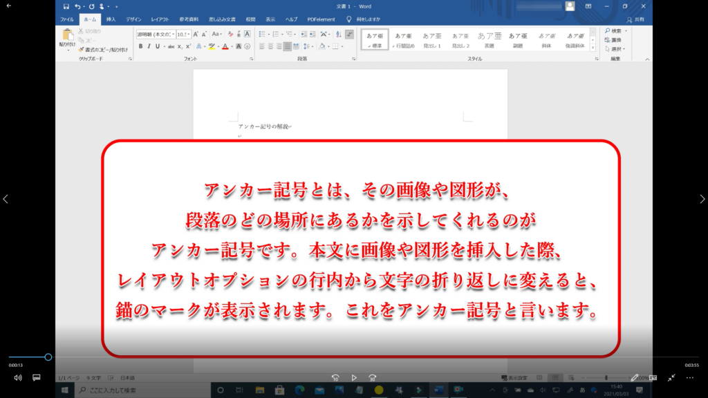 本記事では、「Word アンカー記号の解説」の解説を初心者の方にも分かるように約4分の動画で解説しています。