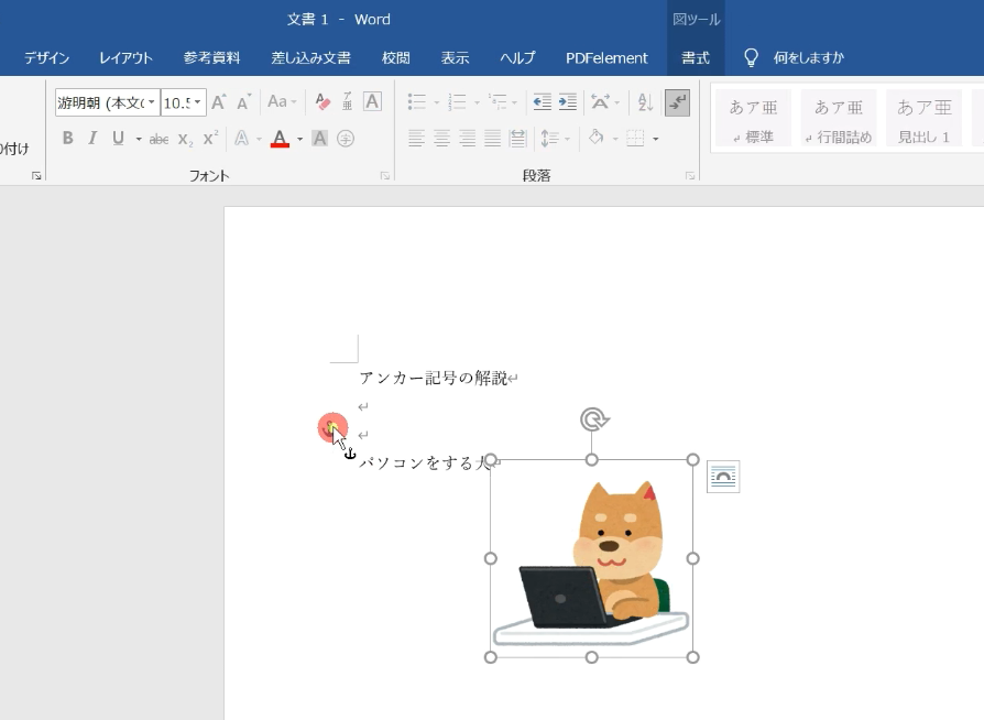 アンカー記号とは、その画像や図形が、段落のどの場所にあるかを、示してくれるのがアンカー記号です。
