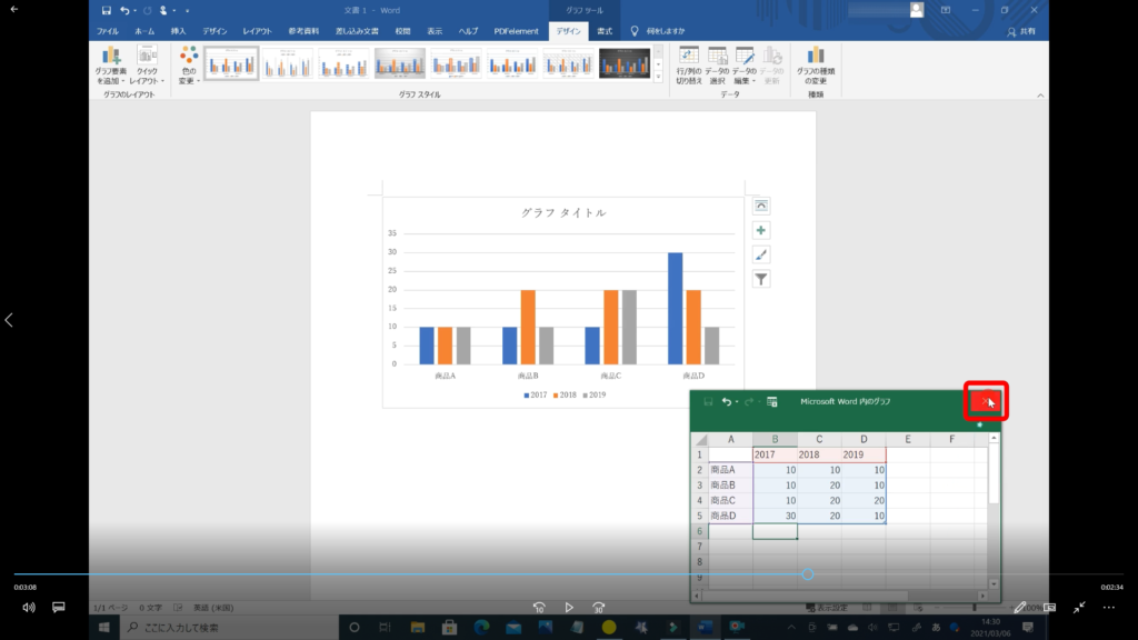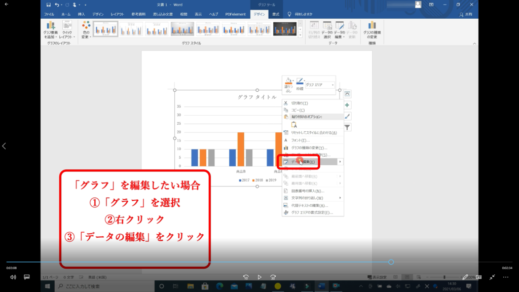 本記事では、「Word 簡単なグラフの使い方」の解説を初心者の方にも分かるように約6分の動画で解説しています。