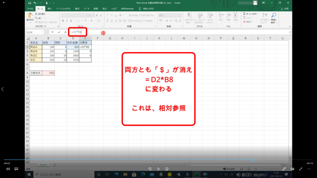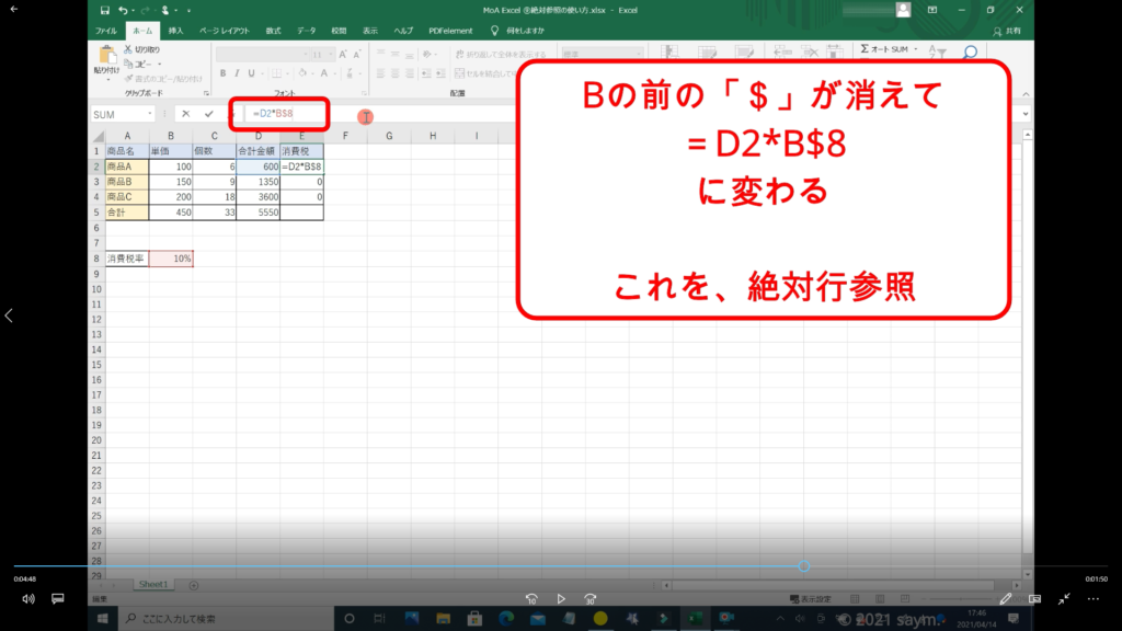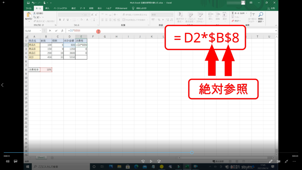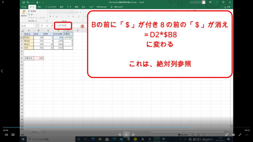 Excel 絶対参照の使い方 動画