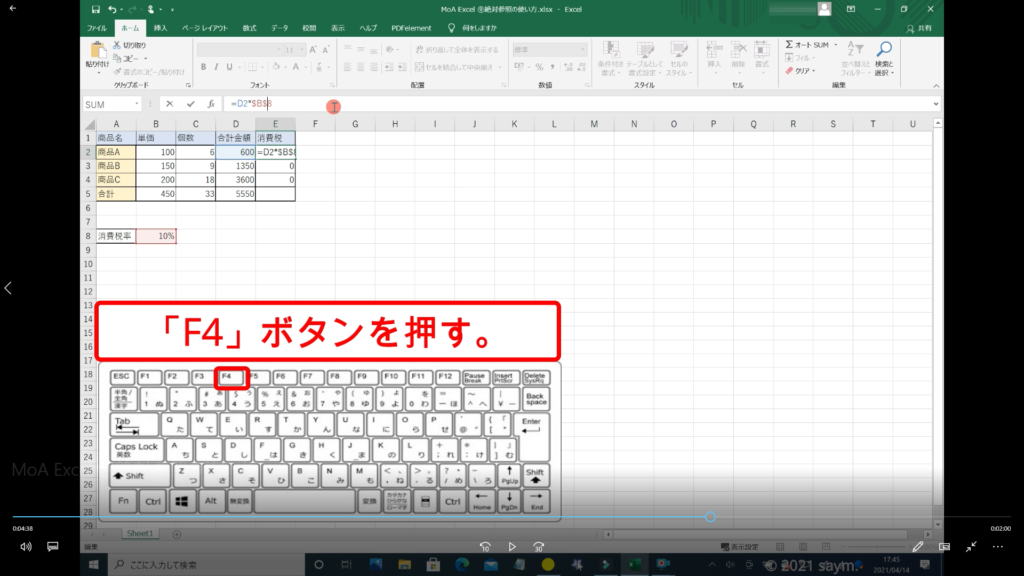 絶対参照の「F4」ボタンの使い方