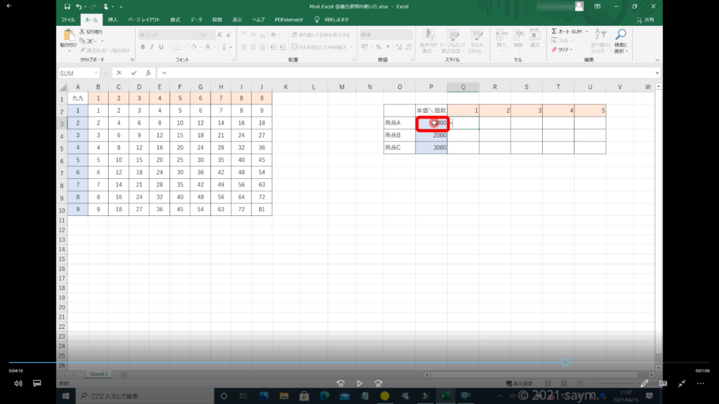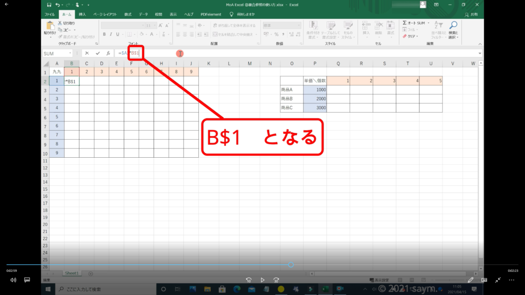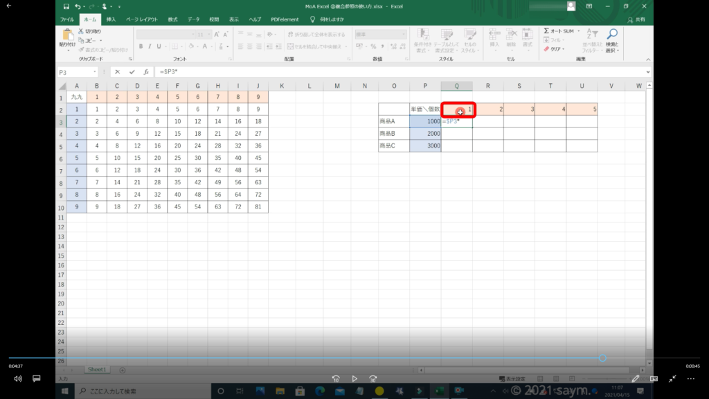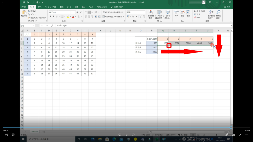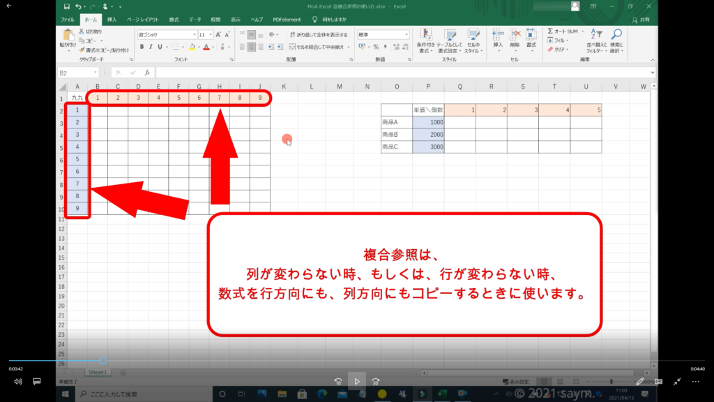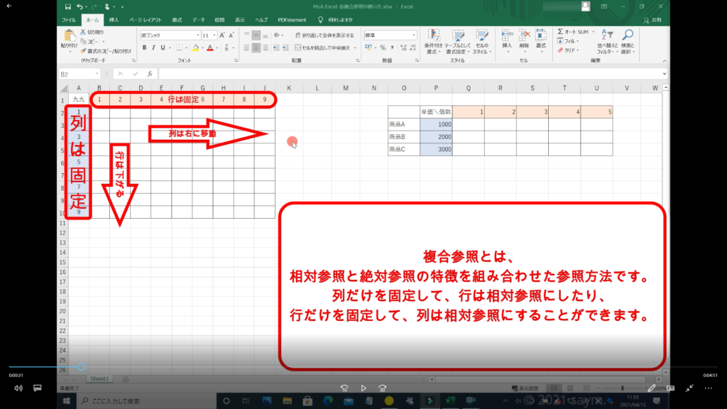 Excel 複合参照の使い方 動画