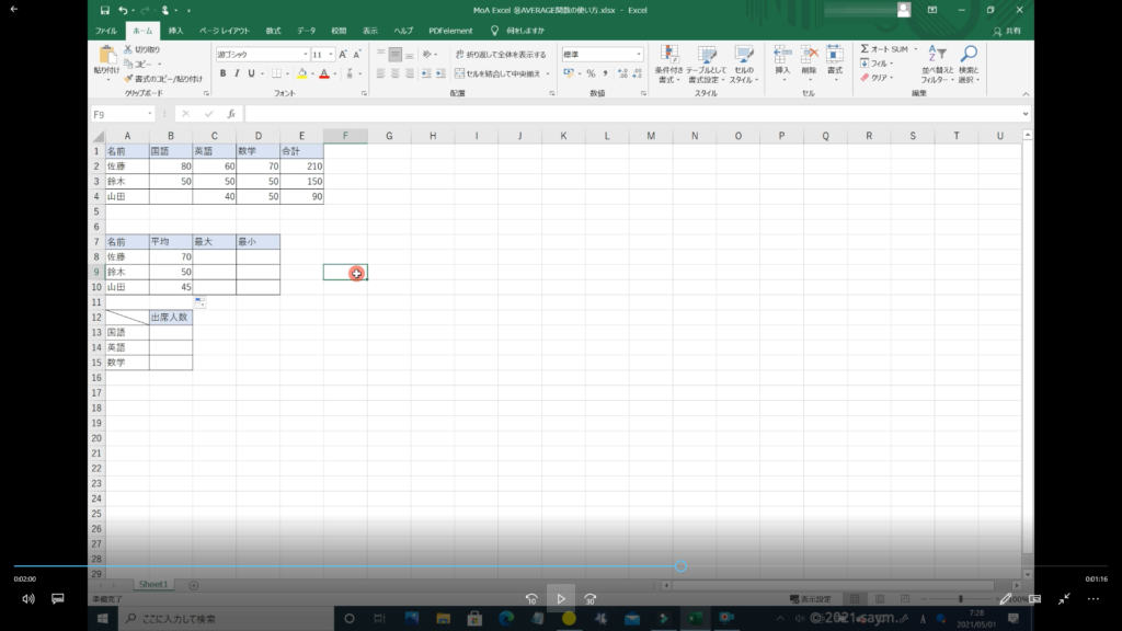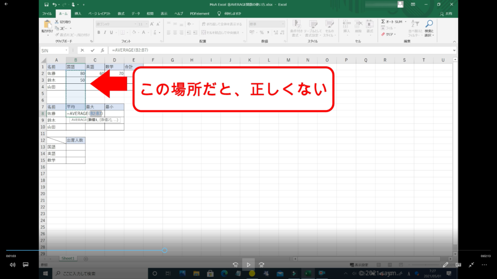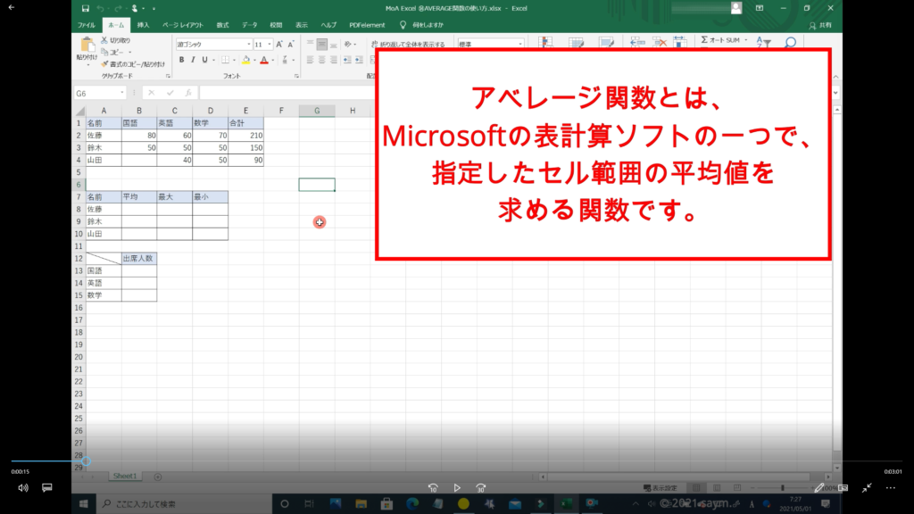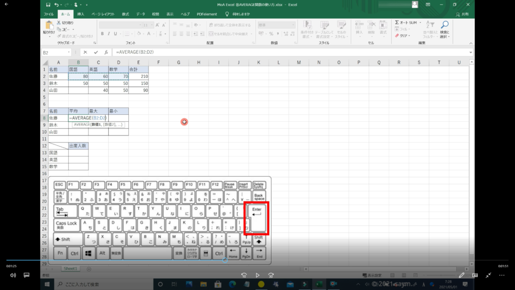 Excel AVERAGE関数/平均を求める関数の使い方 動画