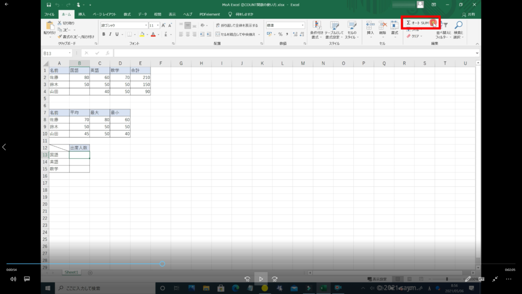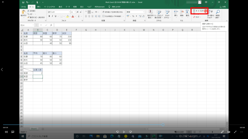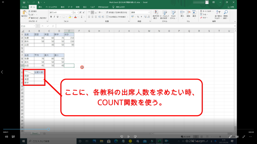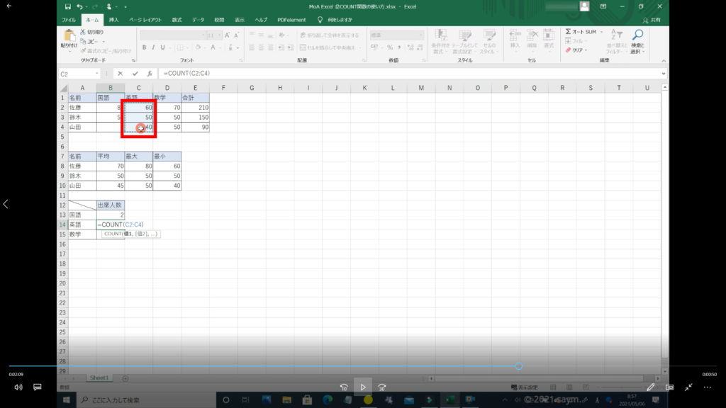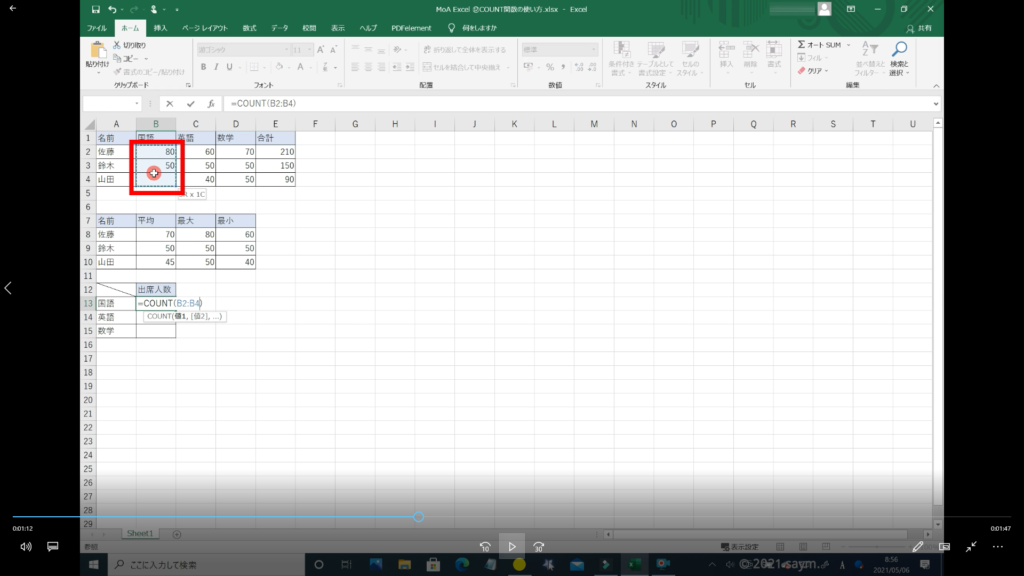 Excel COUNT関数/数値の個数を求める関数の使い方 動画