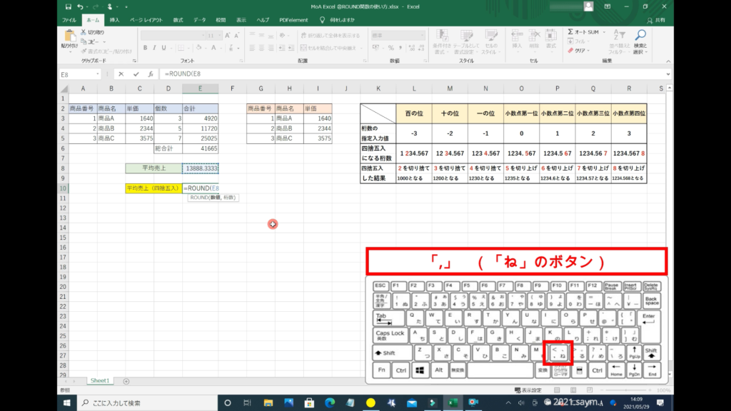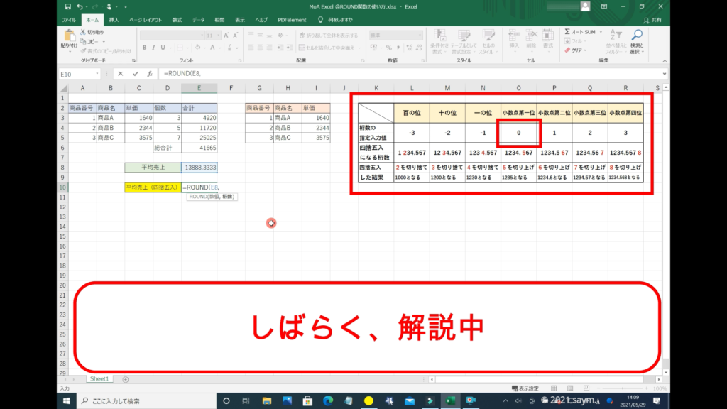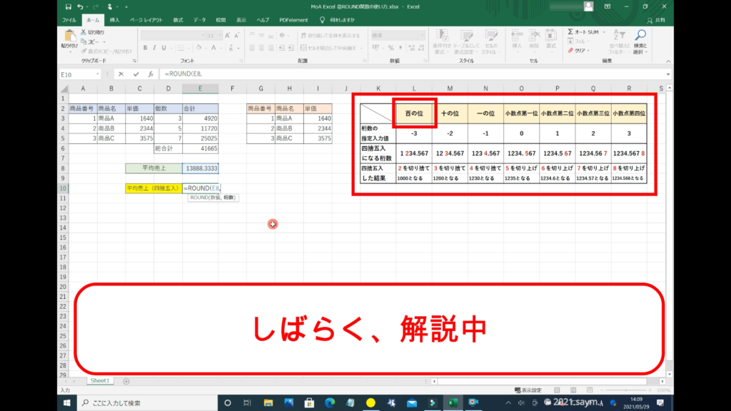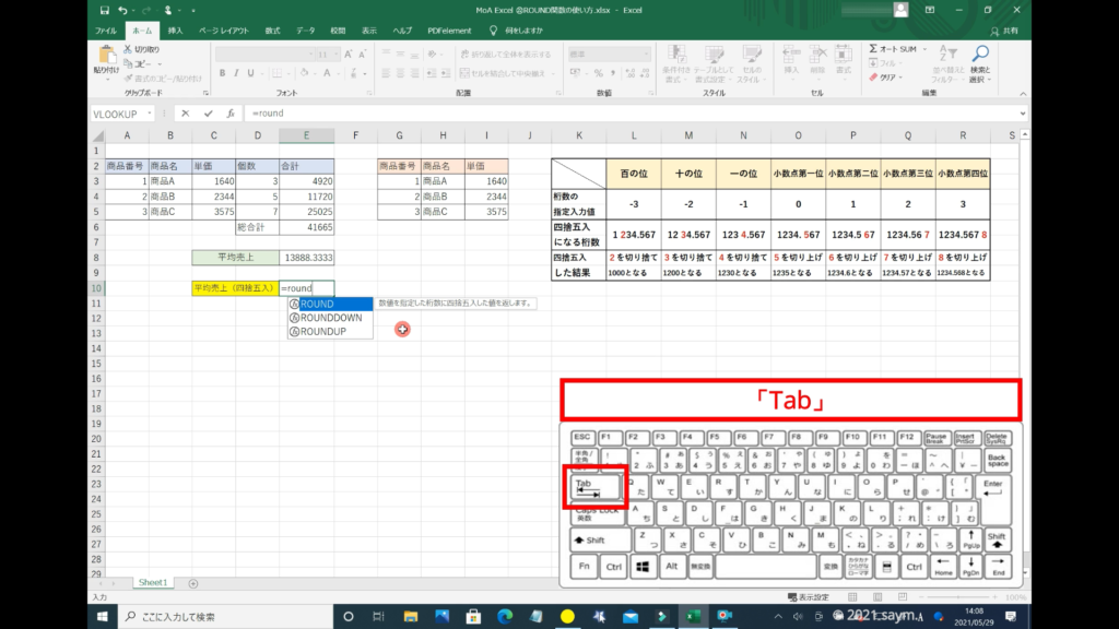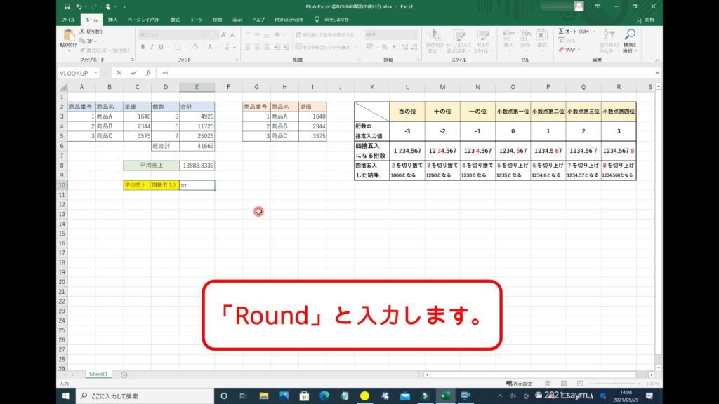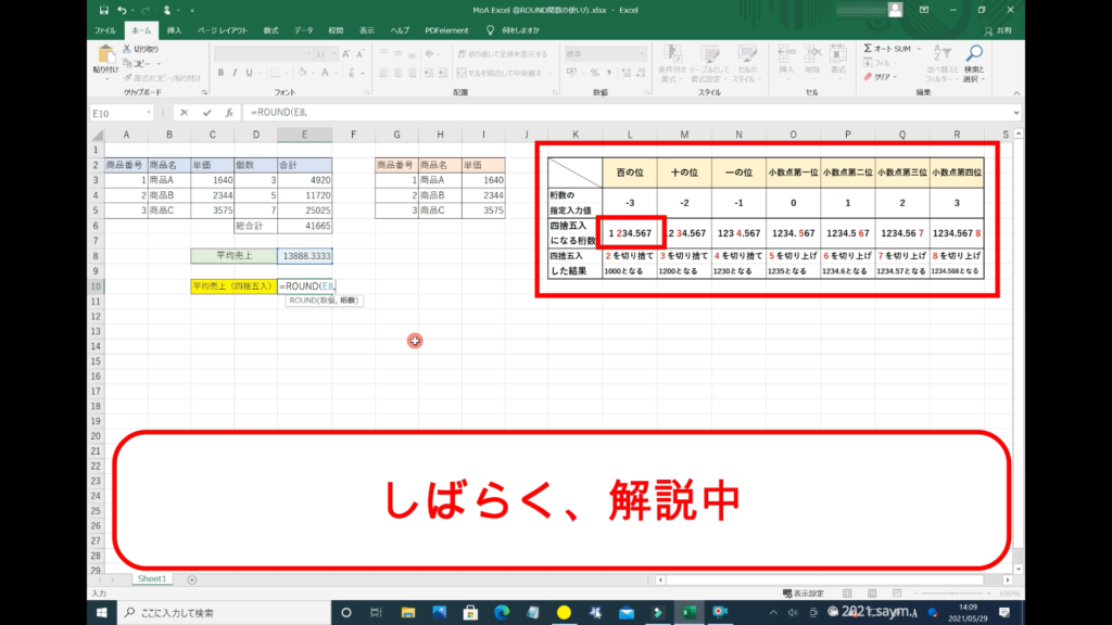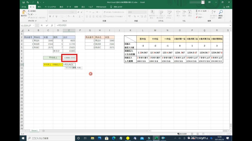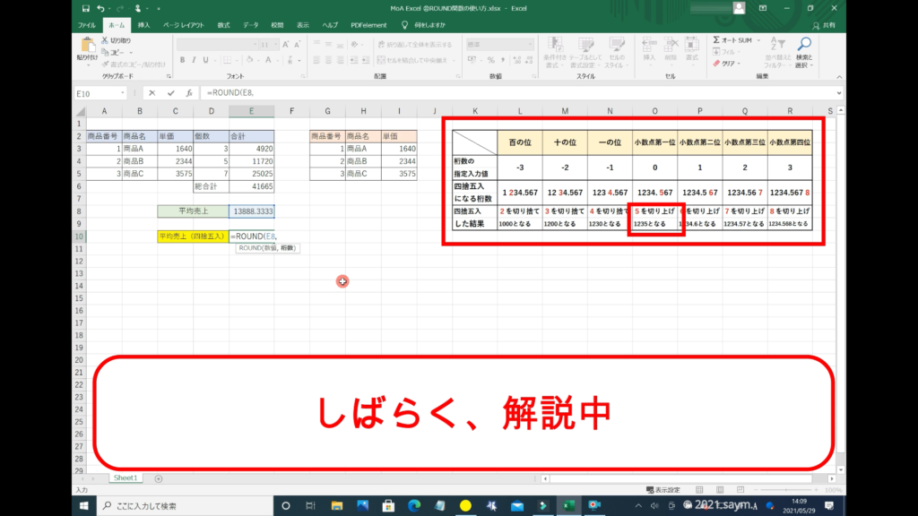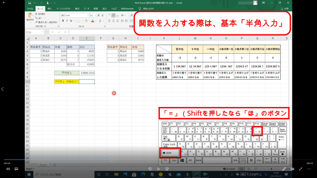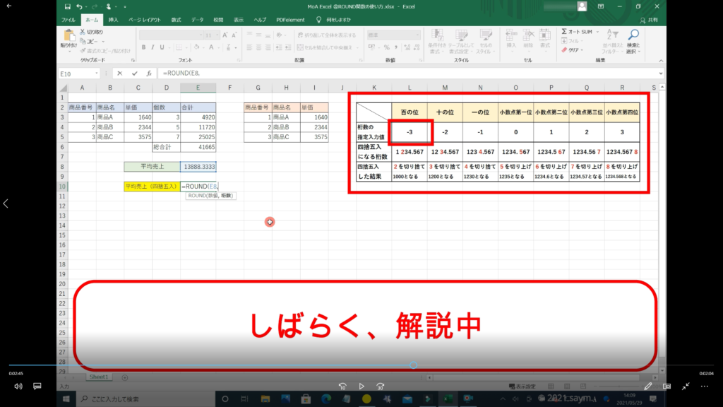 Excel ROUND関数/四捨五入してくれる関数の使い方 動画