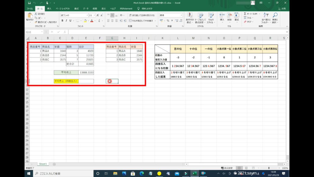 ↓手順① 平均売上(四捨五入)の所をアクティブにします。
