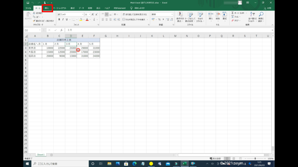 それでは、この表を参照して「グラフ」を作っていきます。