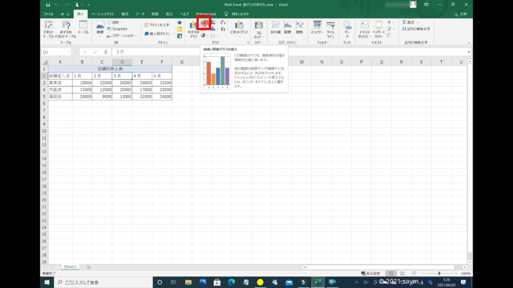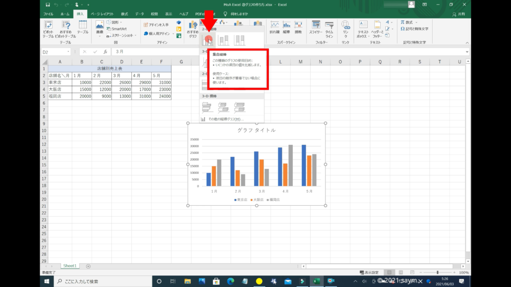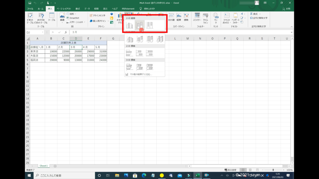 一番上に2D縦棒というのがあり、その中でもいくつか種類があります。
