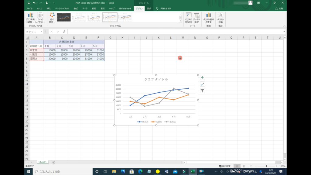 以上で、Excel 、基本となるグラフの作り方の解説を終わります。お疲れさまでした。