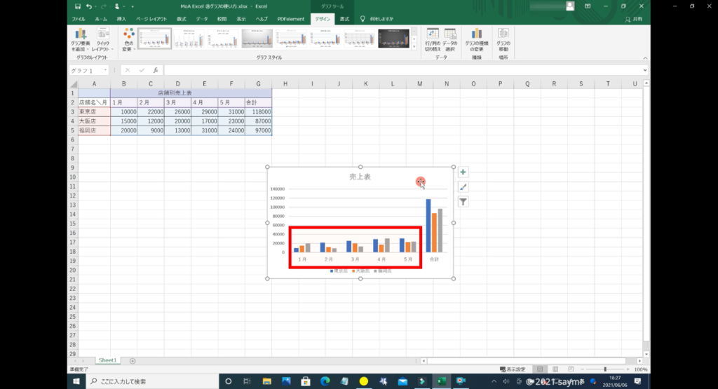 以上で、Excel グラフの作り方の解説を終わります。お疲れさまでした。