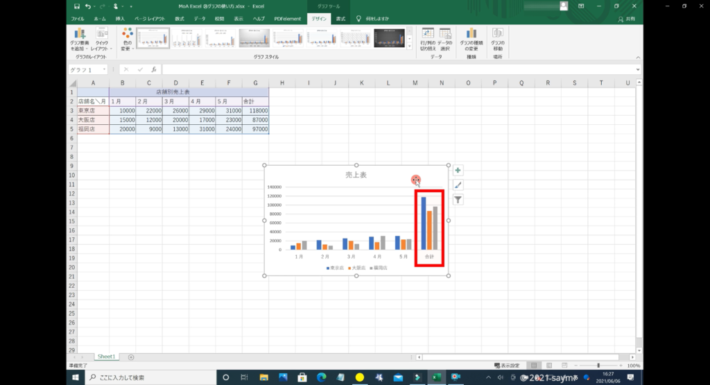 合計は、できれば別のグラフに分けて表示したほうが見やすいので、この表は、
