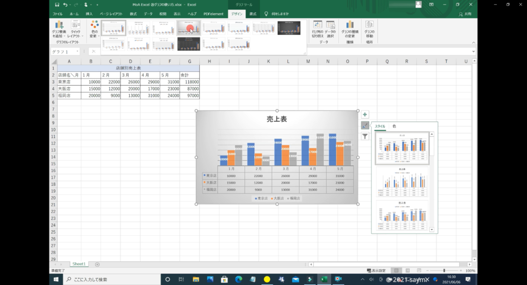 「グラフスタイル」とは、グラフのレイアウトのことです。