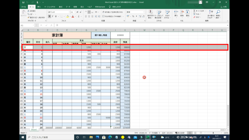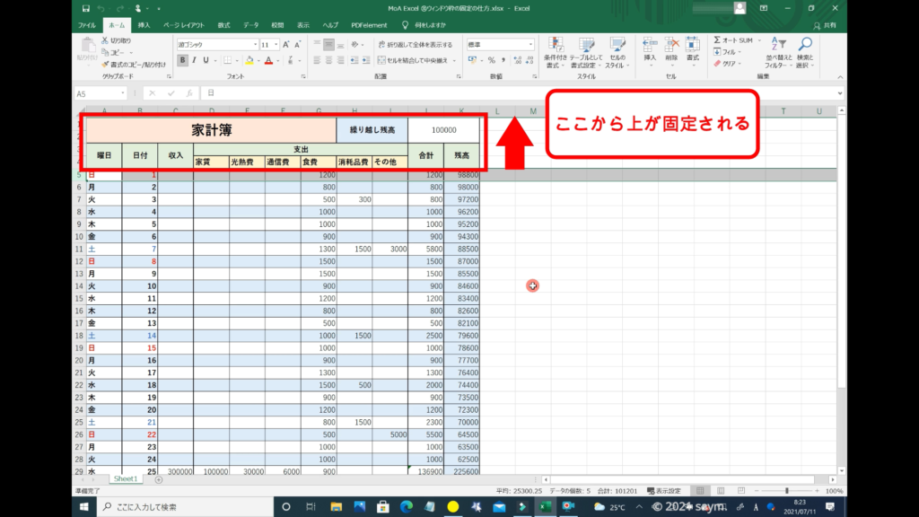 以上で、Excel ウィンドウ枠の固定の仕方の解説を終わります。お疲れさまでした。