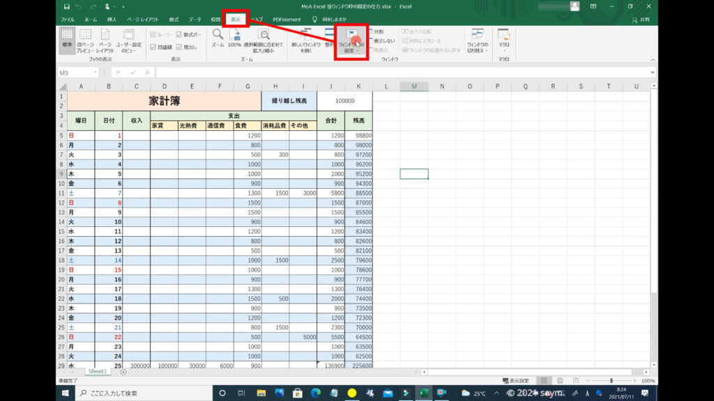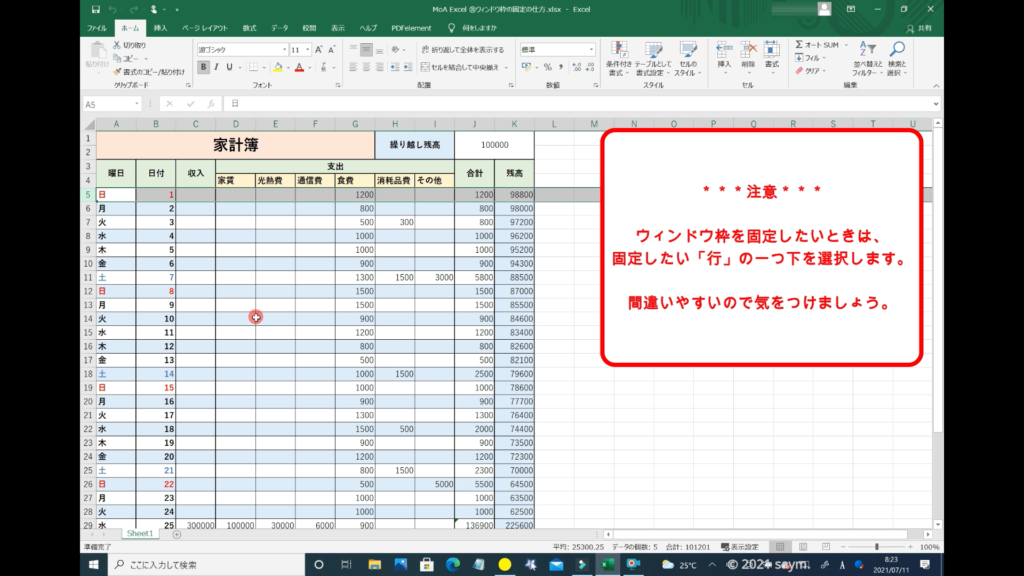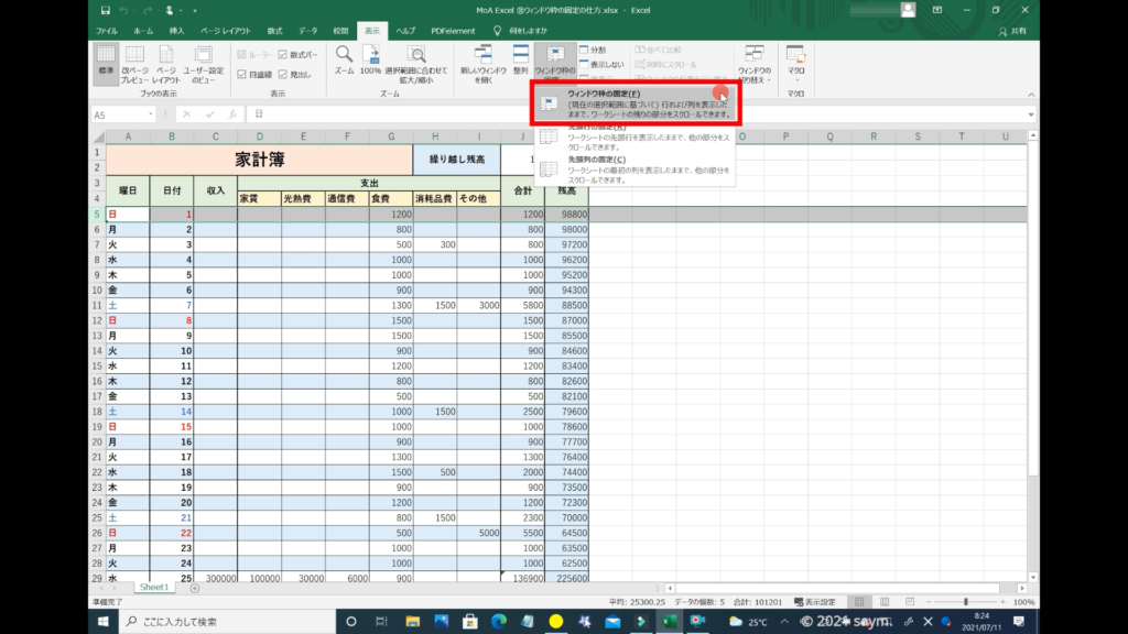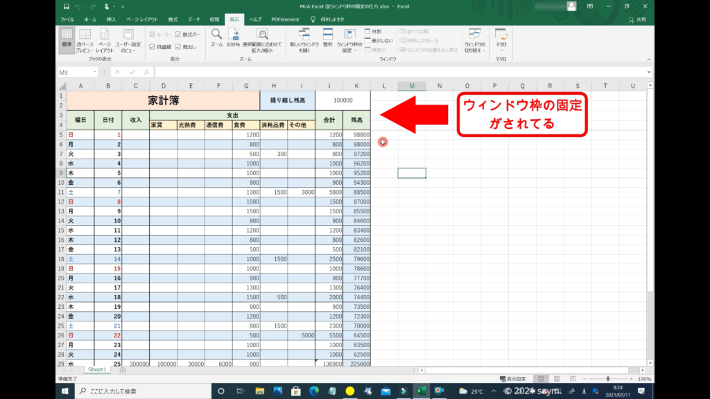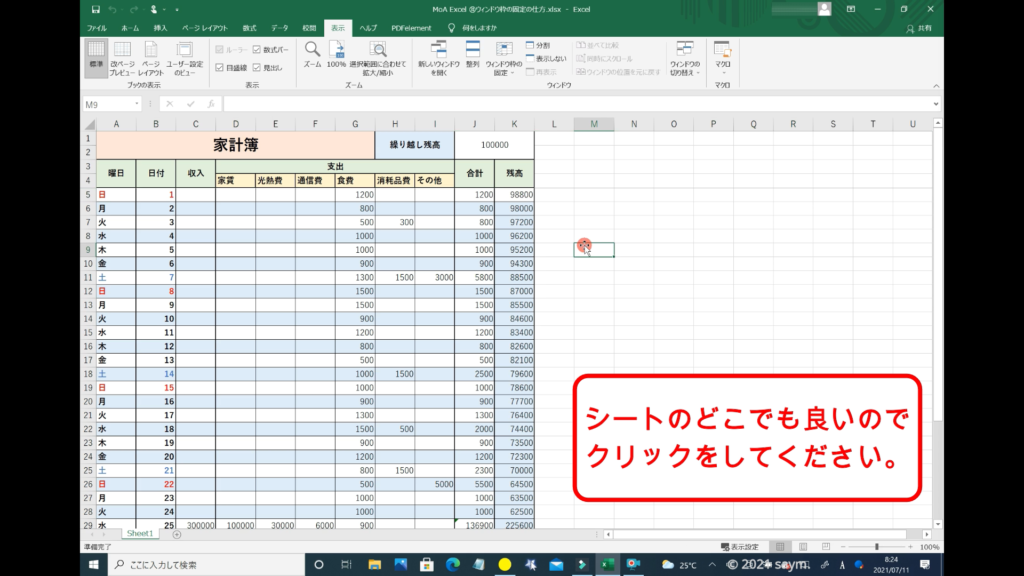 Excel ウィンドウ枠の固定の仕方 動画