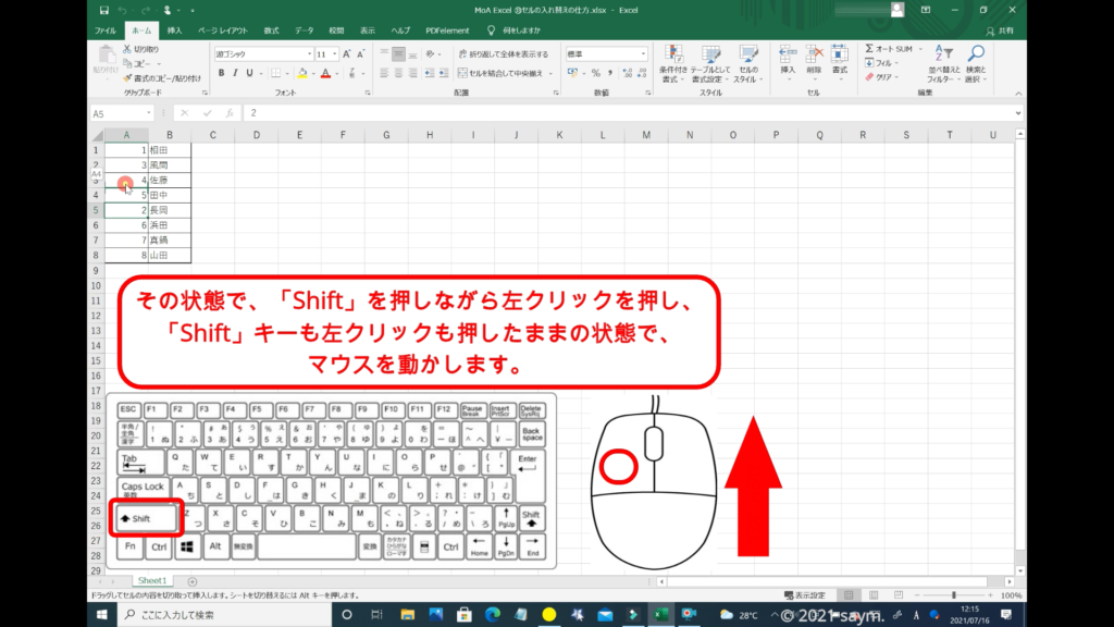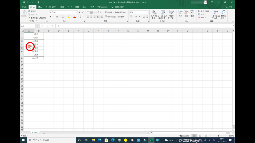 Excelを使う上で、セルの入力順を間違えてしまった時、セル挿入などをしなくても順番を入れ替える事ができます。