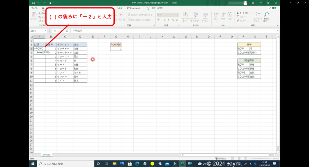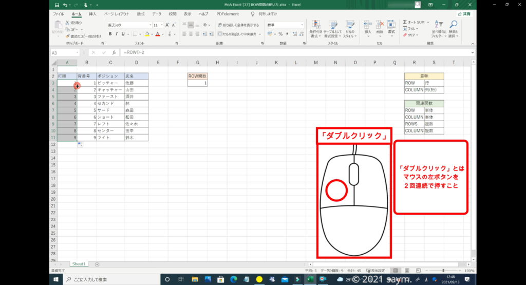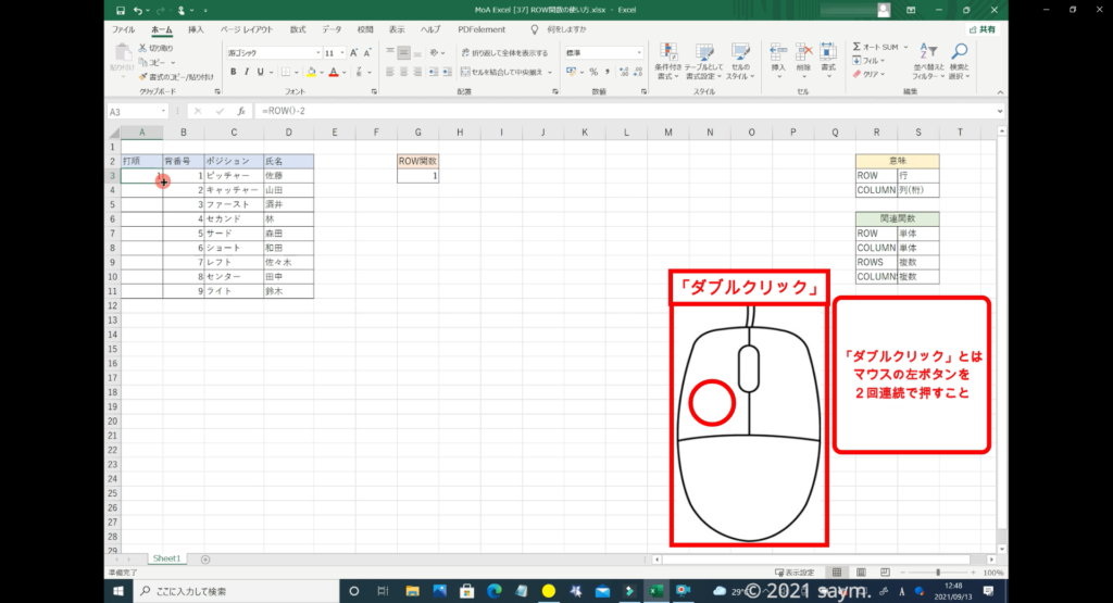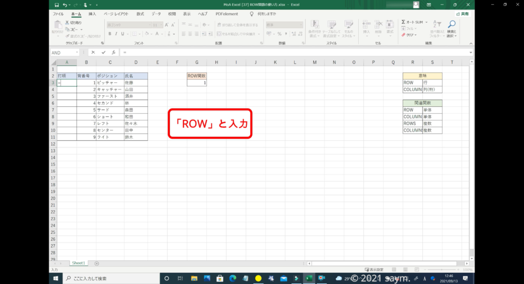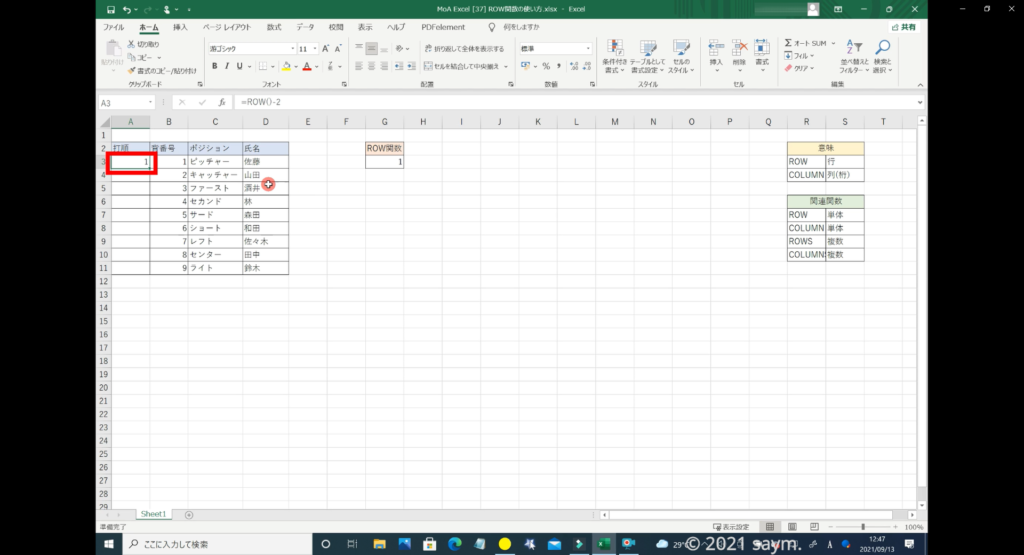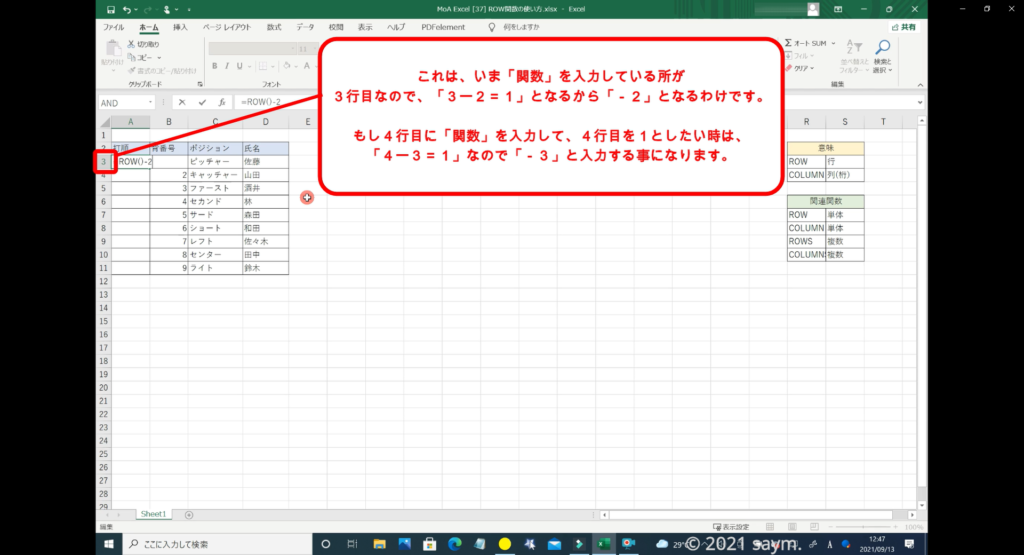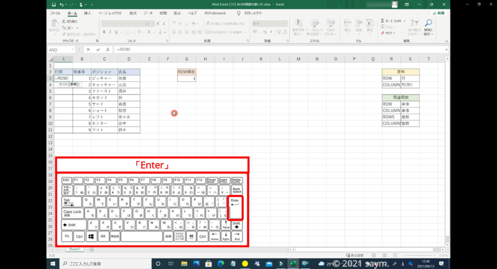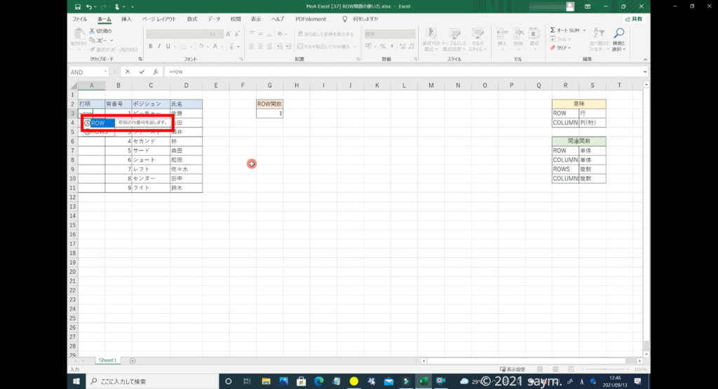 Excel ROW関数/指定したセルの行番号を求める関数の使い方 動画