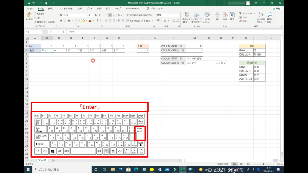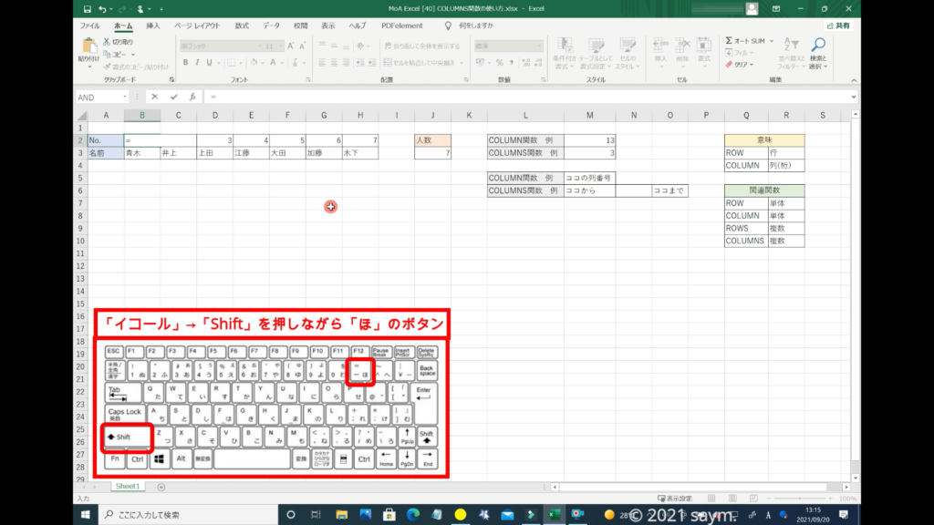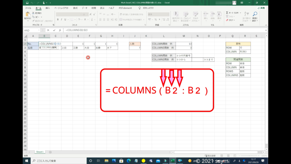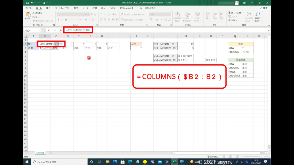 Excel COLUMNS関数/複数のセル範囲、または、配列に含まれる 「列数」を求める関数の使い方 動画