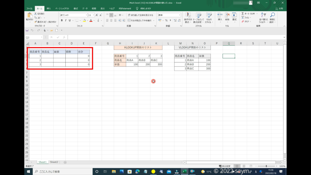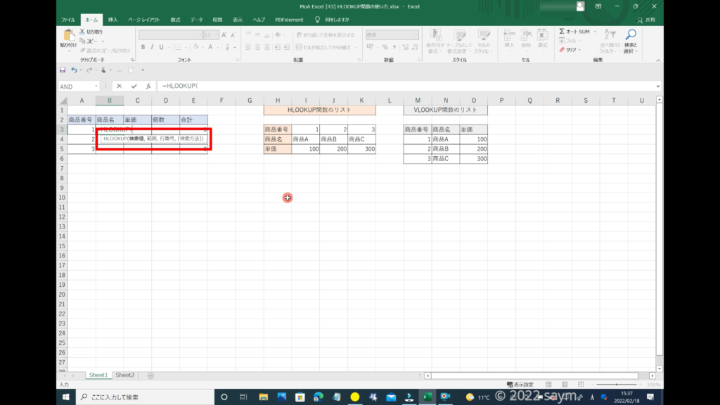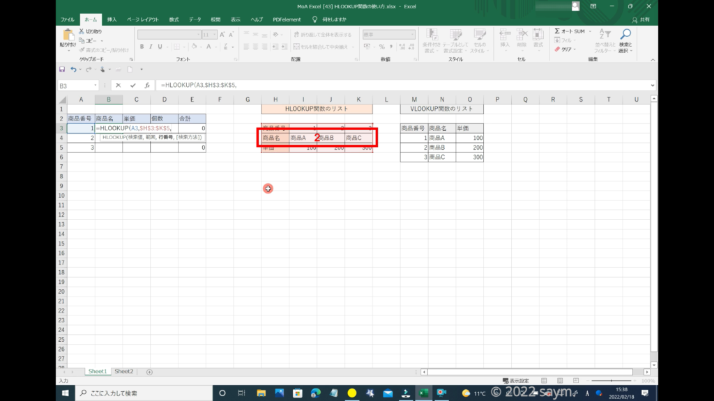それでは、HLOOKUP関数の使い方の解説をしていきます。