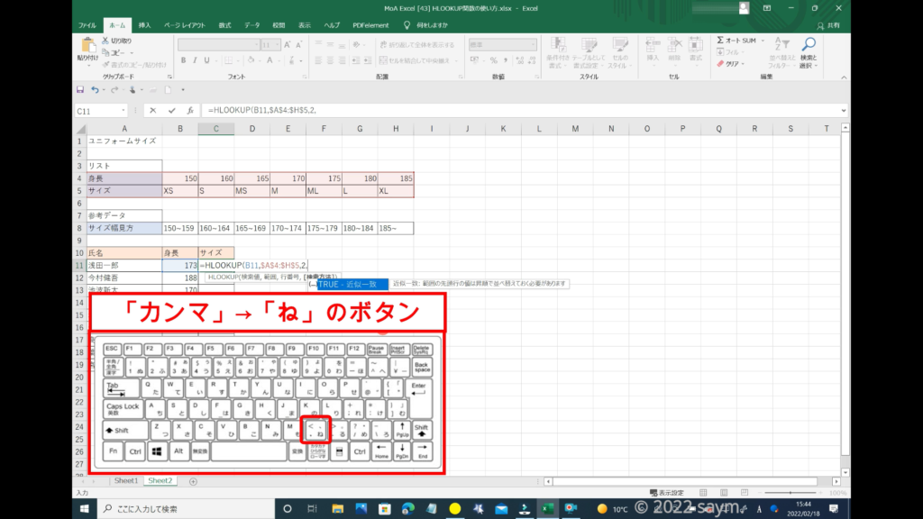 これで、近似一致の意味が解ったかと思うので、関数を入力してみます。