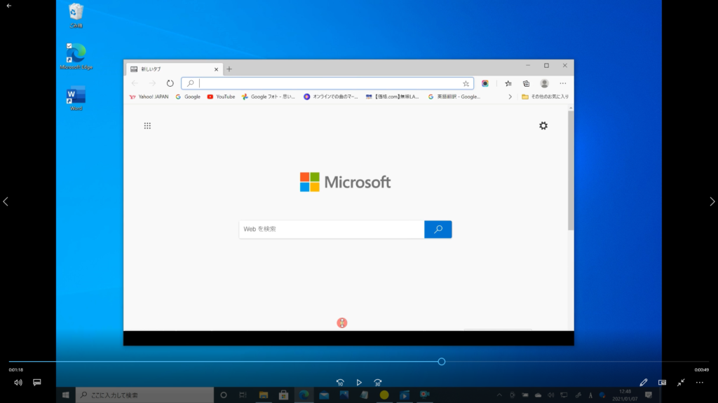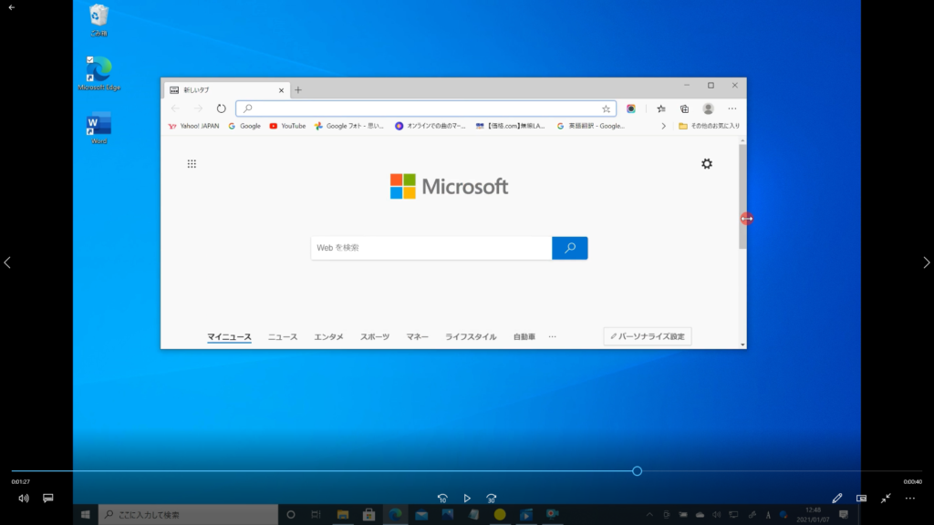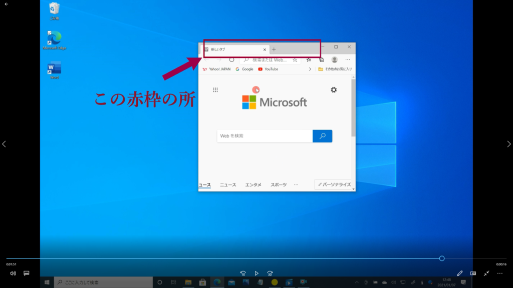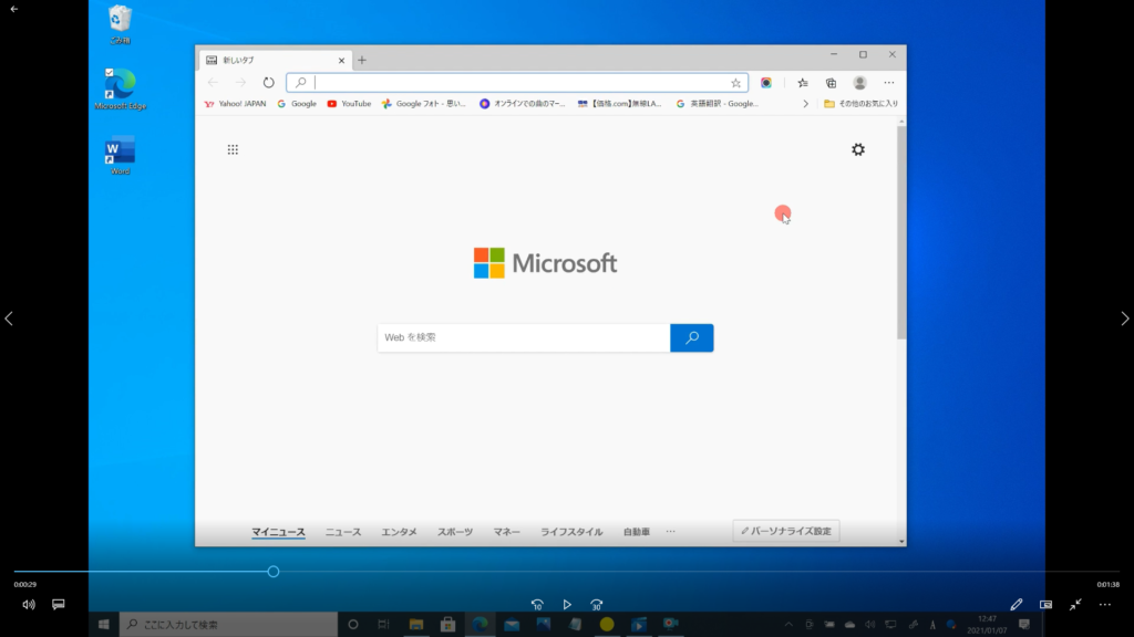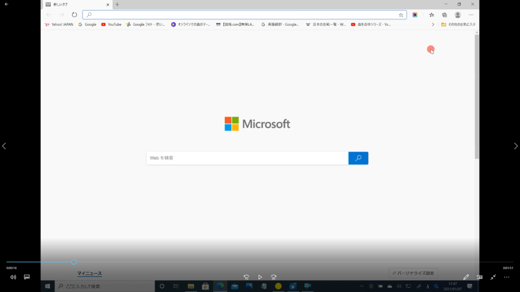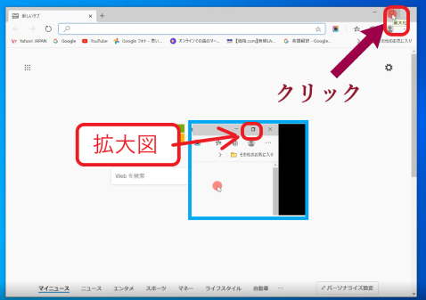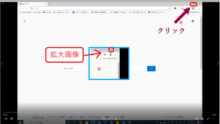 ↓手順① 今回は、Microsoft Edgeを使って解説していきます。下記の画像は画面いっぱいの状態の画像です。