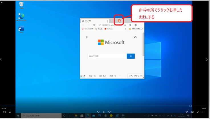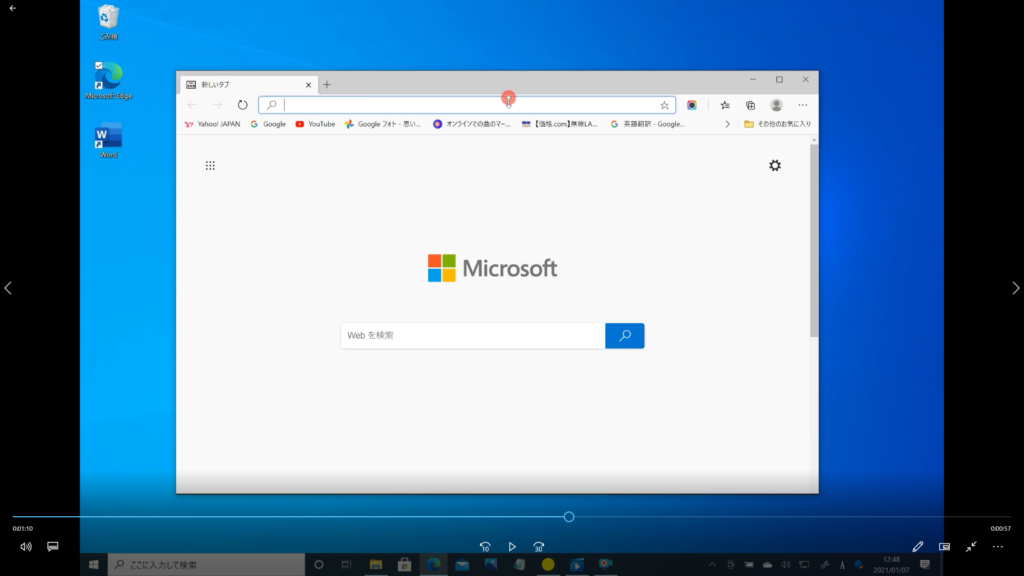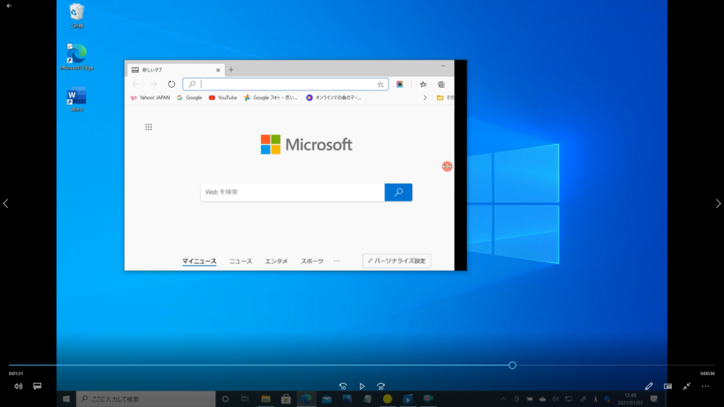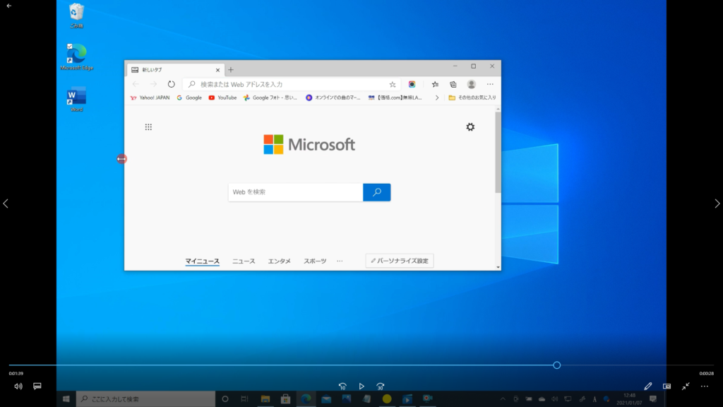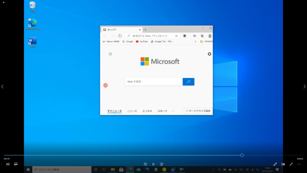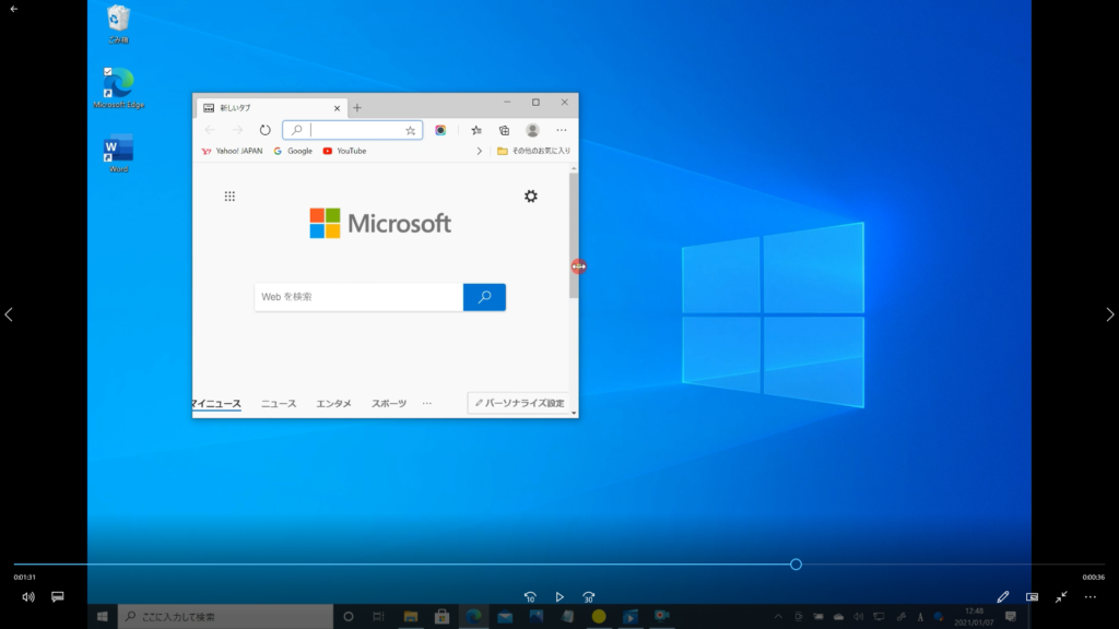 ↓手順① 今回は、Microsoft Edgeを使って解説していきます。下記の画像は画面いっぱいの状態の画像です。