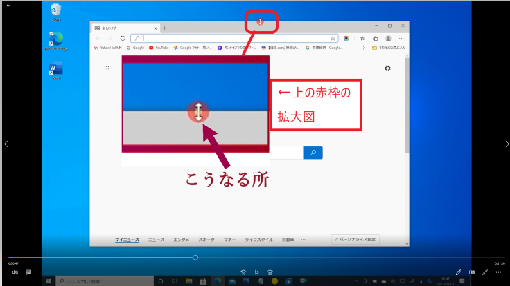 基本的には、この2パターンとタスクバーに一度隠すやり方なのですが、縮小画面を更に調節するやり方も解説します。