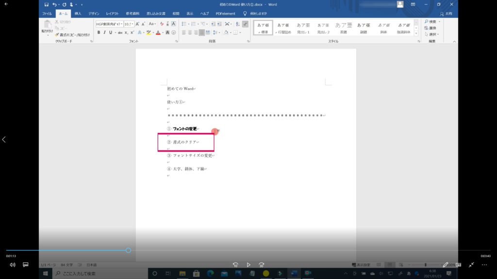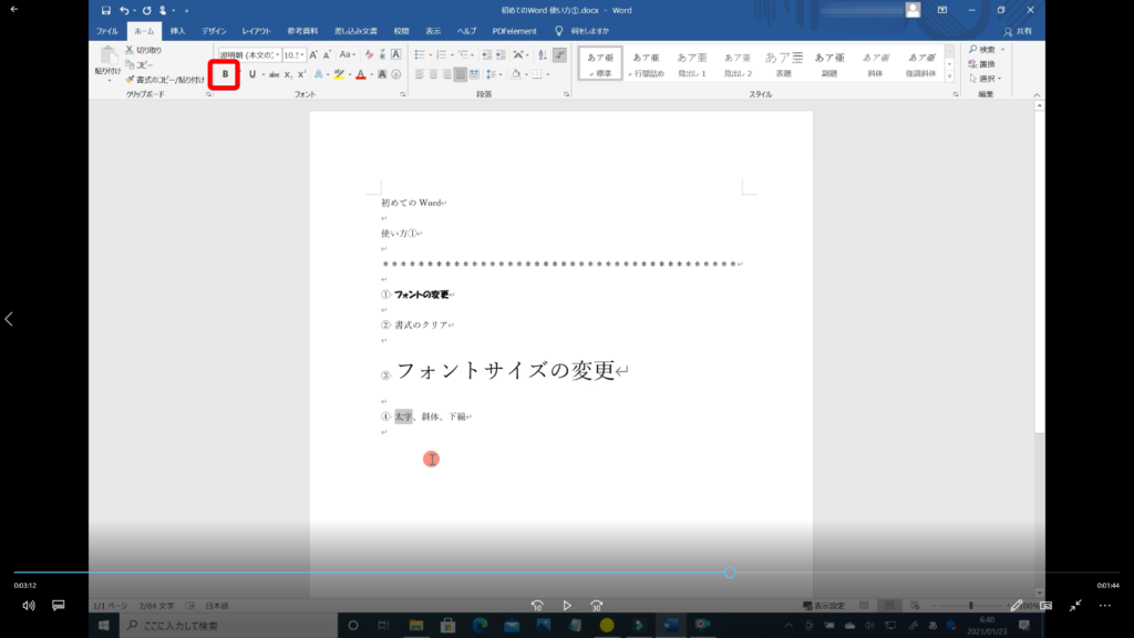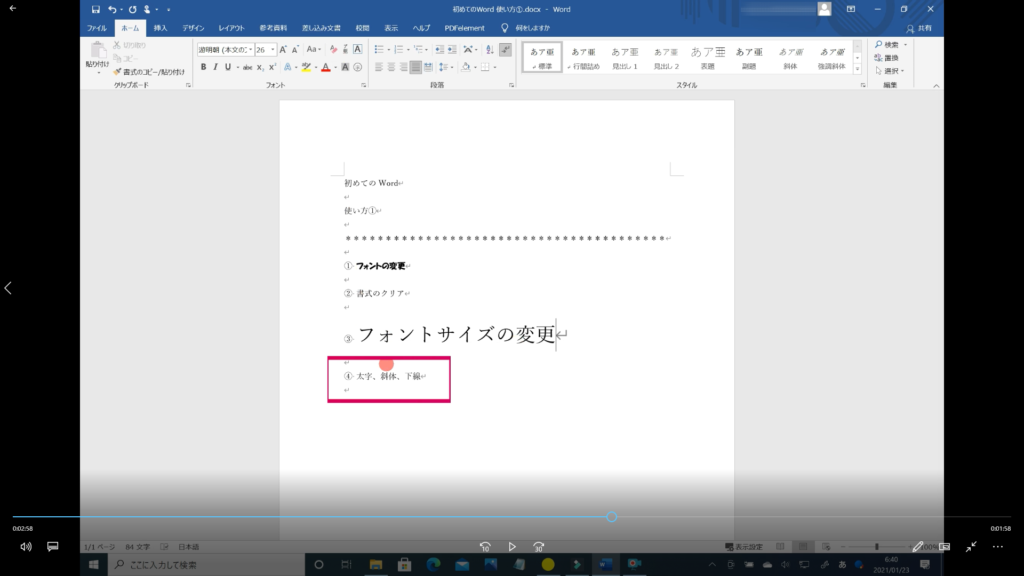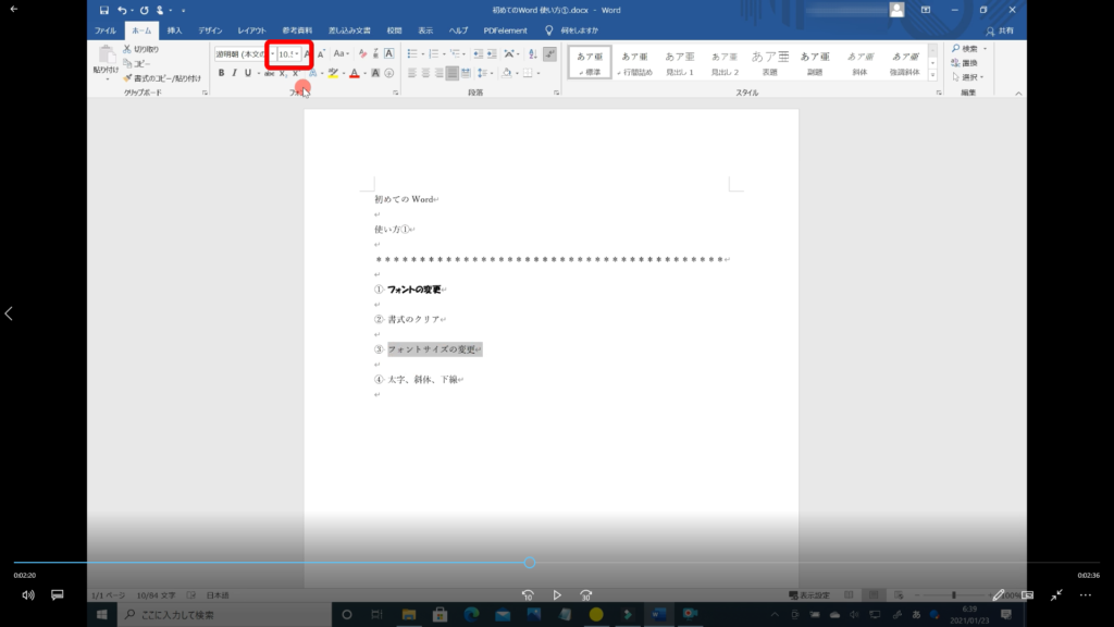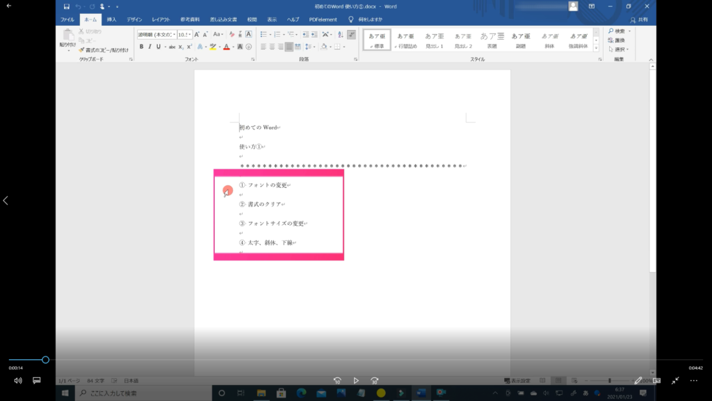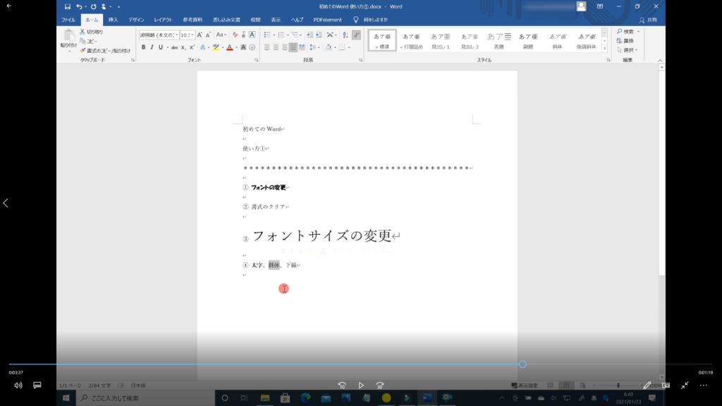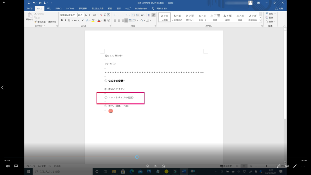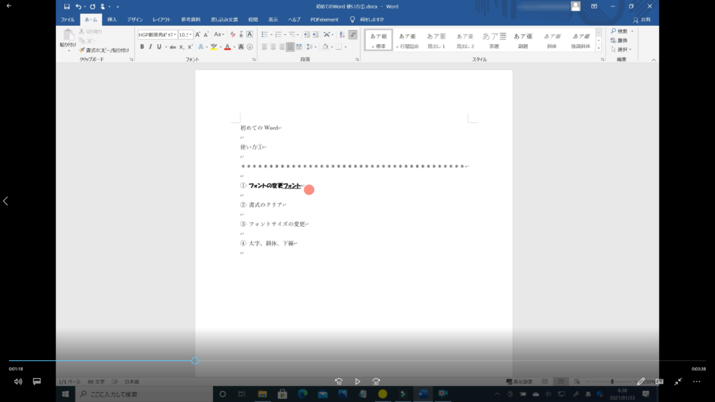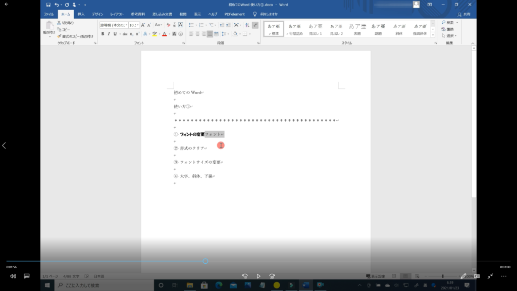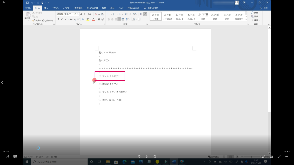 本記事では、「Word フォントの使い方 その①」の解説を初心者の方にも分かるように約5分の動画で解説しています。